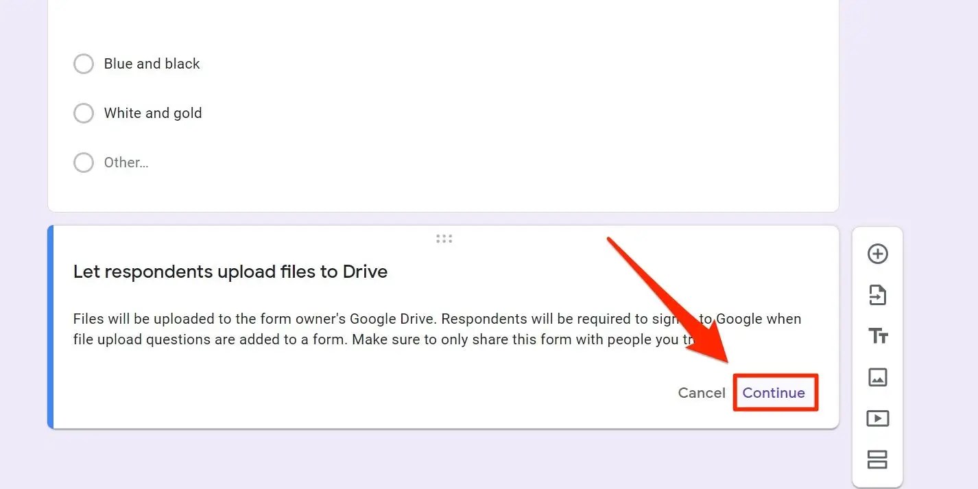 Choose either a blank form or from a sign in to continue. You can create a google form that does not require signing in to google (that is, the user can fill in the form anonymously).